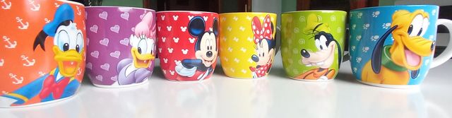 6 Tazze da colazione Disney con Paperino, Paperina, Minni, Topolino, Pluto, Pippo.