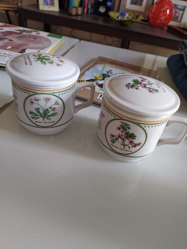 Tazze tisaniera della Tognana,in porcellana con coperchio e filtro. Mai usate. Tazas de té de hierbas de porcelana de Tognana con tapa y filtro. Nunca usado.