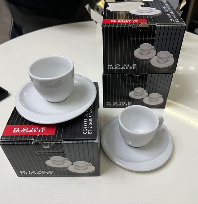 Tazzine caffe’ Bugatti .6 tazzine con piattini ,nuove per inutilizzo.