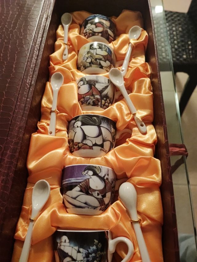 6 tazzine con cucchiaini in ceramica
