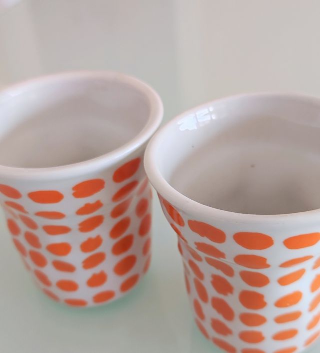 Set di due tazzine da caffè marca Bialetti. In ceramica. Forma "accartocciata". Usate pochissimo