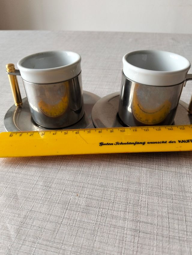 Tazzine da caffè tete a tete realizzate in acciaio ottone ceramica made in Italy nuove mai usate misure come da foto