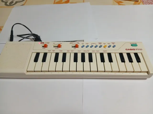 Dettagli del prodottoTastiere elettronica Casio PT-10 vintage, un classico per imparare la musica. Design compatto e leggero. Altoparlante integrato. Pulsanti di selezione ritmo e tono. Funziona solo con trasformatore, non funziona con batterie. (VENDUTO SENZA TRASFORMATORE). La descrizione è stata tradotta automaticamente.