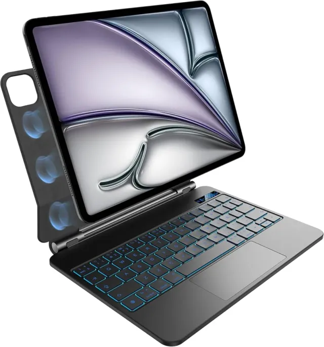 Dettagli del prodottoTeclado per iPad Air da 11 pollici (M3 2025 e M2 2024), iPad Air 5ª/4ª Gen e iPad Pro da 11 pollici (4ª, 3ª, 2ª, 1ª Gen), retroilluminazione, touchpad multi-touch, design magnetico sospeso, Nero, in tedesco. Connessione magnetica. Retroilluminazione LED blu. Touchpad integrato. iPad Air da 11 pollici 2024 (M2), iPad Air 5ª/4ª generazione, iPad Pro da 11 pollici 4ª/3ª/2ª/1ª generazione. NOTA: NON compatibile con iPad Pro da 12,9 pollici, 10,5 pollici o iPad Pro da 11 pollici 2024. Si prega di verificare attentamente prima dell'acquisto. La descrizione è stata tradotta automaticamente.