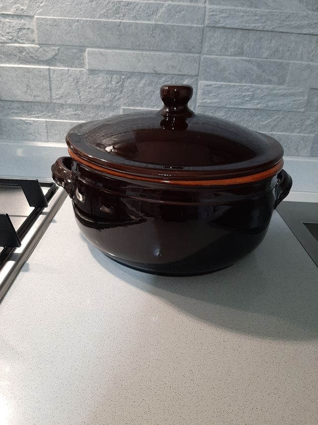 Tegame di terracotta con coperchio, d.24 cm. Altezza 12 cm.