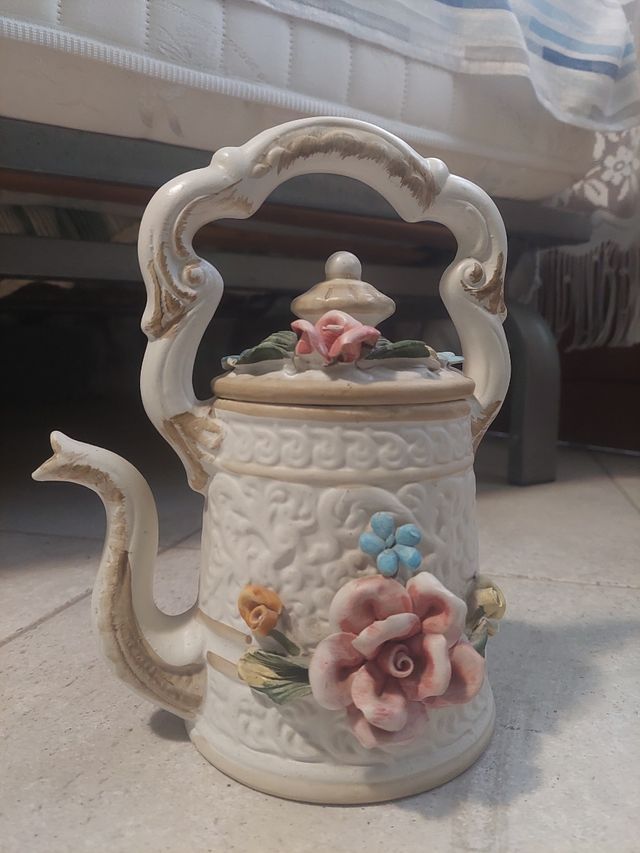 teiera in ceramica con motivi floreali ideale per comporre centrotavola