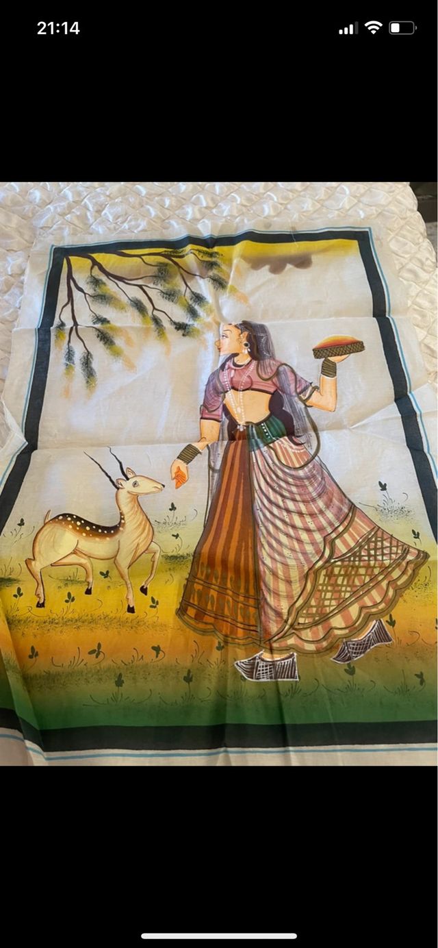 Tela dipinta a mano con cervo e donna