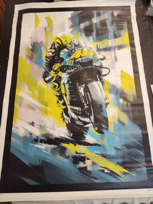 Tela artistica con il numero 46 di Valentino Rossi. - Dimensioni: 80x120 cm. - Stampa su tela di alta qualità. - Design dinamico e colorato.