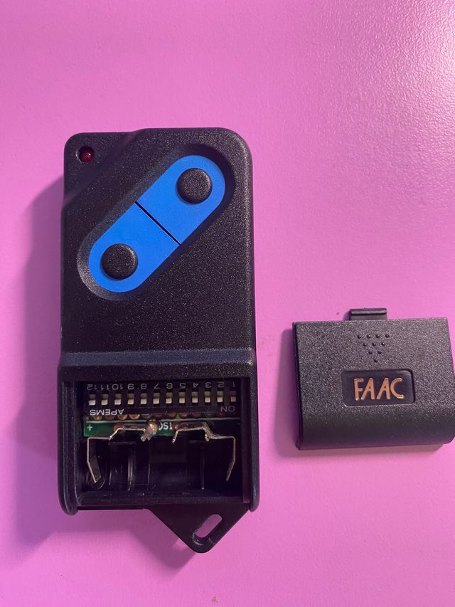 FAAC 433 DS è dotato di 2 pulsanti neri e funziona con batterie 12V su una frequenza di 433.92 MHz