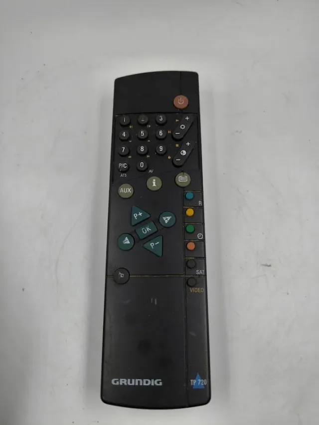Telecomando per TV Grundig, modello TP 720. - Funzionante. - Tasti numerici da 0 a 9. - Tasti P+/P- e OK. - Tasto AUX.