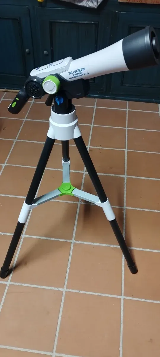 Dettagli del prodottoTelescopio multimedia per vivere avventure spaziali. Design bianco e nero con dettagli verdi. Treppiede regolabile con gambe nere e bianche. Include un'impugnatura per facilitare il trasporto. La descrizione è stata tradotta automaticamente.