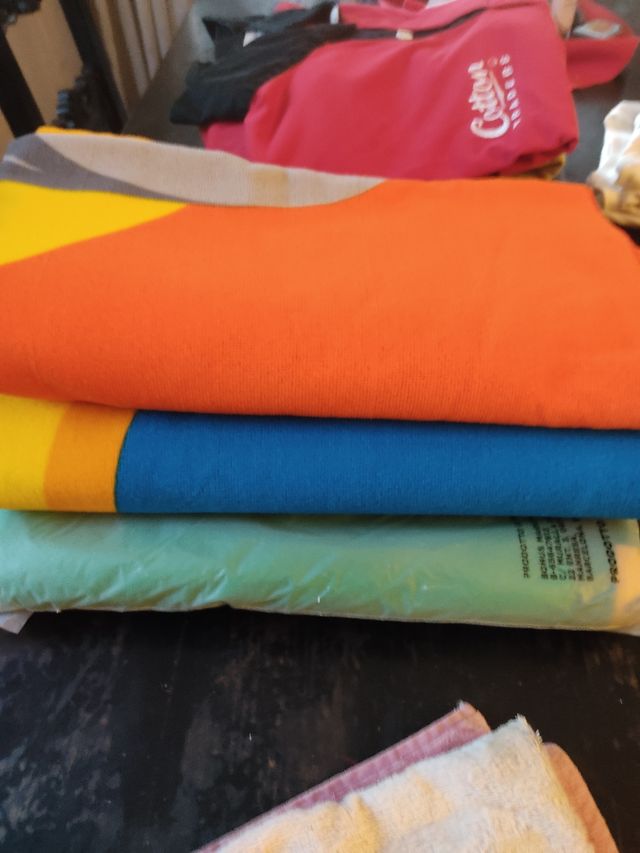 Dettagli del prodottocome in foto vendo tre teli mare che venivano venduti al McDonald's a €4,99 l'uno i teli quello verde è ancora sigillato quello blu solo aperto quello arancione è stato usato una volta quindi consiglio il lavaggio ma sono in perfetto stato