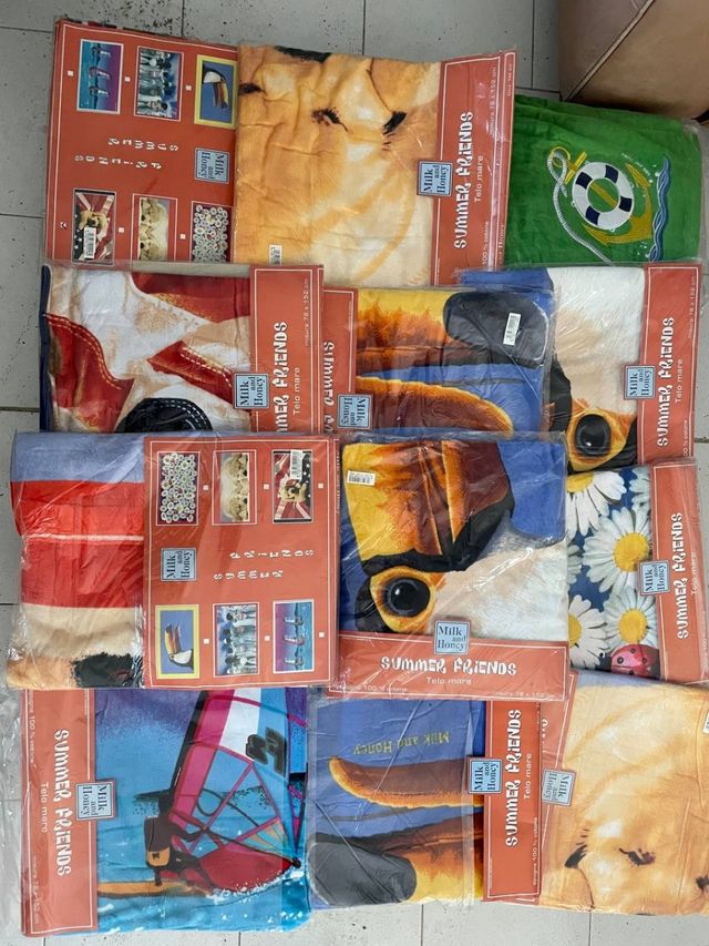 telo mare spugna in 100% cotone, varie fantasie come da foto.