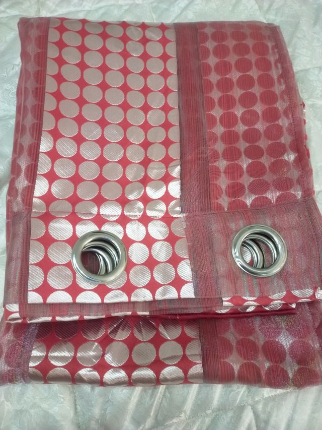 tenda rossa grigia con palline,misura 1,40metri per 2,80 metri.