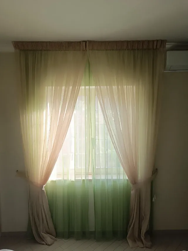Tenda in chiffon e tessuto beige/verde