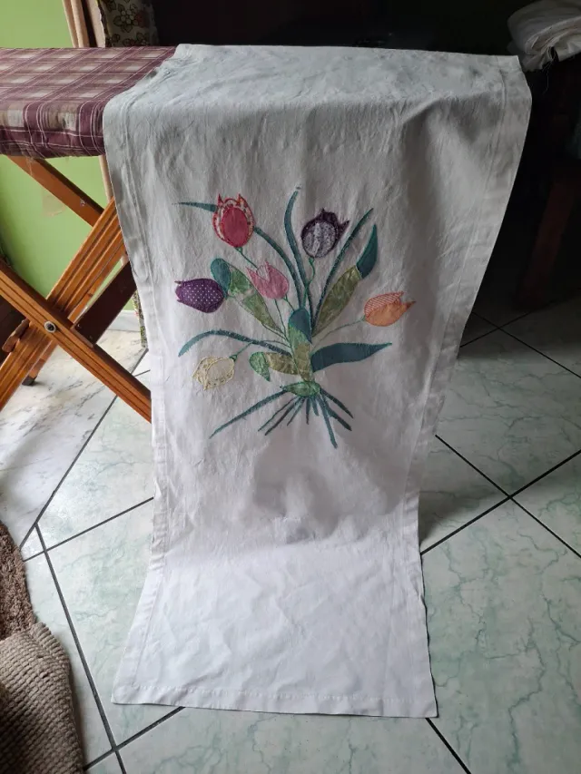Tenda/pannello artigianale con tulipani