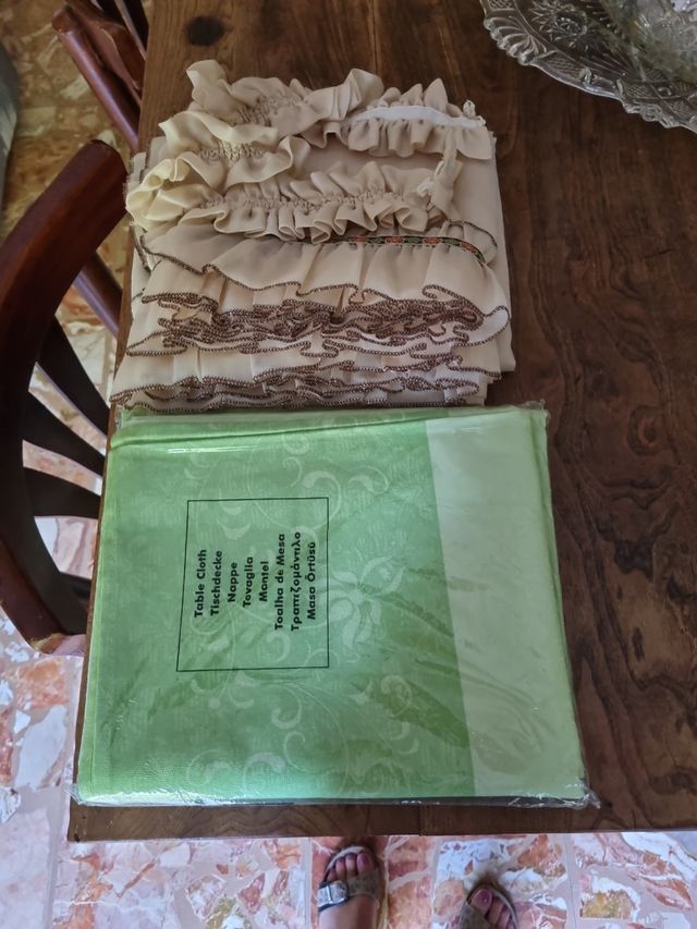 Dettagli del prodottoBellissimo lotto composto da 6 articoli: un set di tende da cucina beige usate, ms.cm.80 x 1,83 con e tovaglia verde cotone,100% nuova cm.1,76 x 1,50 , lenzuolo matrimoniale con federe solo sopra usato pochissimo ,cm. 1,74 x 2,60 ( federe cm.51 x 78 + balze )3 canovacci nuovi cotone 100%cm. 57 x 80. ( vendibili anche separatamente )
