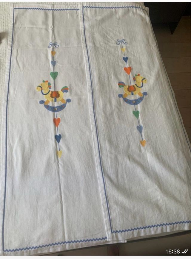 Dettagli del prodottoCoppia di tende, come nuove misura 50x140 cm circa, già dotate di apposita tasca di 3 cm per inserire la bacchetta Misure del prodotto