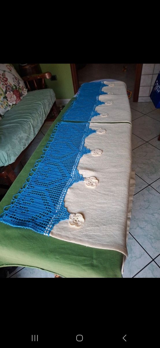 Nuovo · Lino e uncinetto filet · Beige e Blu · Tela e Lino