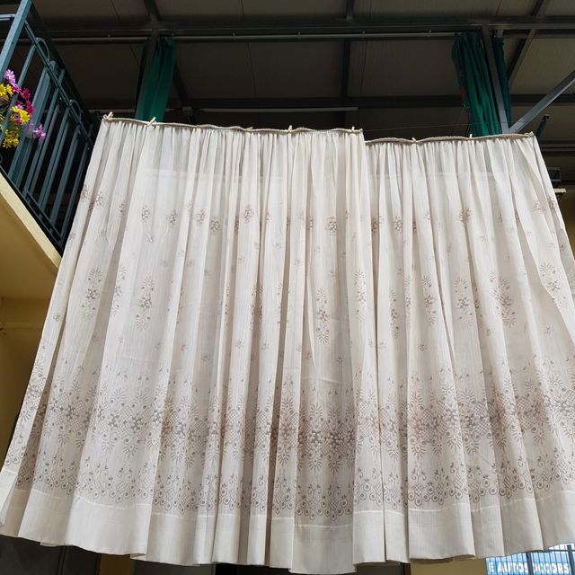 2 tendoni grigio/beige in poliestere. Cad. 140 cm larghezza 220 altezza Ottimo stato come nuovo