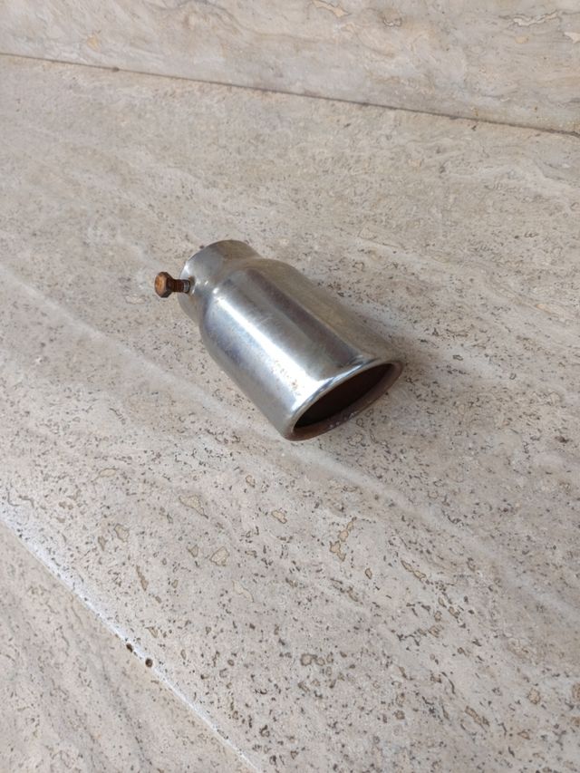 Terminale di scarico per auto in metallo cromato. - Finitura lucida. - Diametro interno circa 5 cm. - Lunghezza circa 12 cm. - Con vite di fissaggio.
