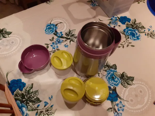- Incluye un termo principal y dos recipientes pequeños.