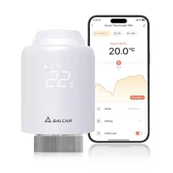 Dettagli del prodottoSALCAR WIFI Termostato si Connettono Direttamente TRV603 Valvole Termostatiche per Termosifoni Compatibili con Amazon Alexa & Google Assistant Valvola Termostatica Programmabili Tuya.VALVOLA TERMOSTATICA: tramite la rete WLAN a 2,4 GHz si può controllare facilmente la temperatura del soggiorno, della cucina, del bagno, la valvola termostatica del radiatore WIFI Salcar può essere integrata nella tua casa intelligente.