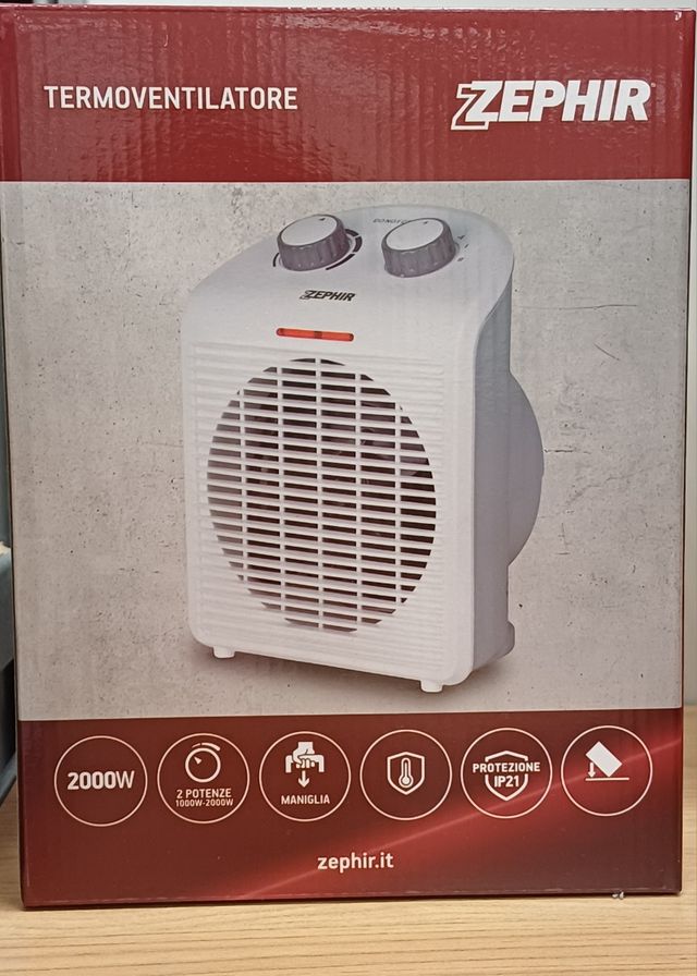 Dettagli del prodottoTermoventilatore Zephir bianco e grigio.