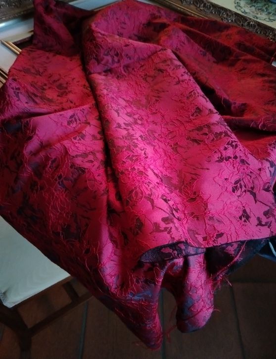 Scampolo di tessuto damascato nuovo di alta qualita',tessuto Jacquart rosso e nero,broccato,misure:91x145 cm circa.Raffinato. Prezzo fisso.