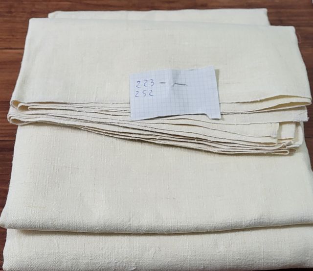 Dettagli del prodottotessuto in puro lino grezzo facente parte di un vecchio corredo di famiglia, nuovo mai utilizzato mis 252 per 223 ,tessuto già bagnato prima di mettere in vendita, prezzo già scontato per dargli la possibilità di essere utilizzato in vari modi.