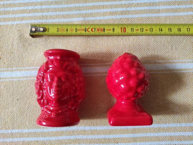 uno a forma di testa di Moro e l'altro a forma di pigna! Di piccole dimensioni come in foto. La testa di moro ha un foro per mettere una candela e dei bastoncini per aromi.