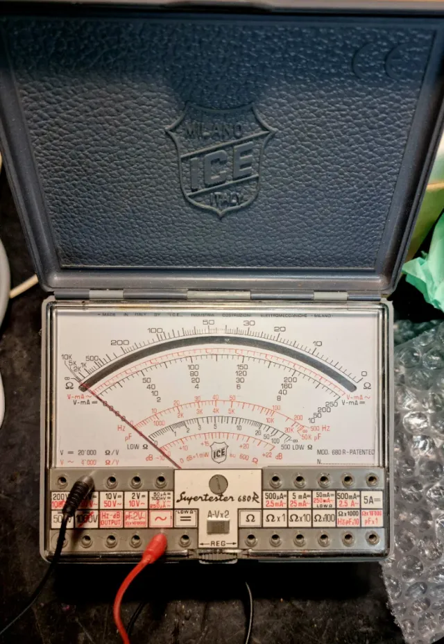 Tester analogico ICE Supertester 680R. - Strumento di misura multifunzione. - Quadrante analogico con diverse scale di misurazione.