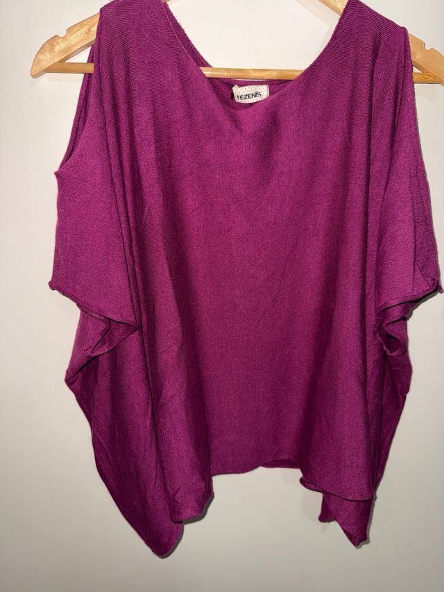 Maglioncino Tezenis con spalle scoperte. - Taglia unica. - Colore viola. - Design a poncho.
