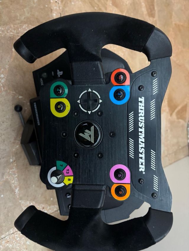 Dettagli del prodottoVolante Thrustmaster T300 con cerchio stile F1 Open Wheel e cerchio Ferrari Alcantara. Design sportivo ed ergonomico. Pulsanti colorati con numeri. Logo Thrustmaster al centro. La descrizione è stata tradotta automaticamente.