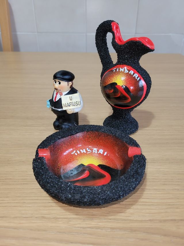 ℹ️Posacenere statuetta e figura U mafiusu di Tindari. Sempre tenuti in vetrina. La statuetta è un po rovinata. NON SEPARO. Prezzo trattabile