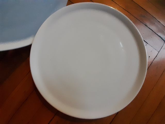 Quattro piatti grandi da pizza in porcellana bianca, diametro 32 cm. Regalo mai utilizzato.
