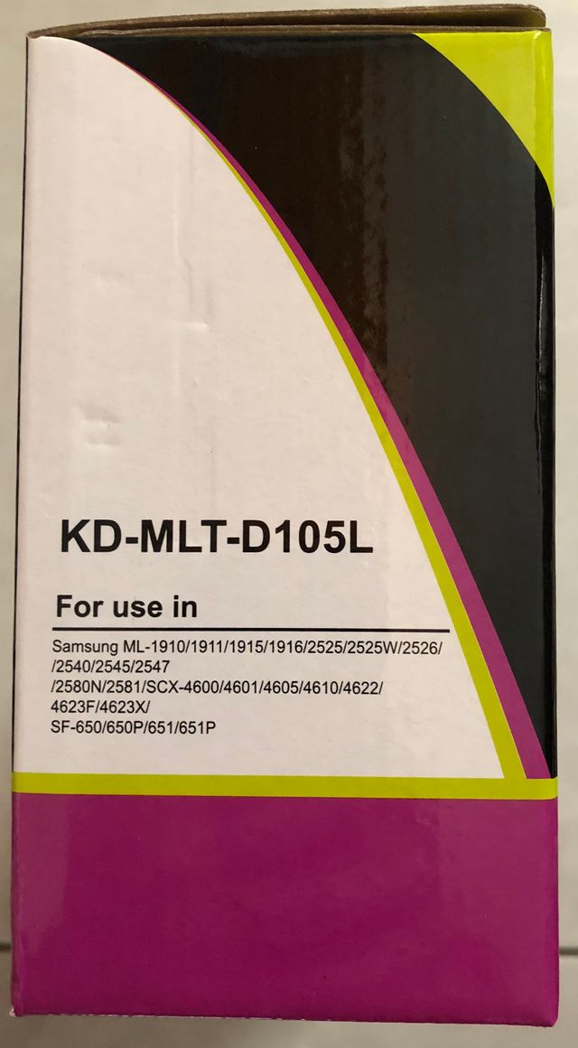 Dettagli del prodottoToner KD-MLT-D105L compatibile con stampanti: Samsung ML-1910/1911/1915/1916/2525/2525W/2526/2540/2545/2547/2580N/2581/SCX-4600/4601/4605/4610/4622/4623F/4623X/SF-650/650P/651/651P.