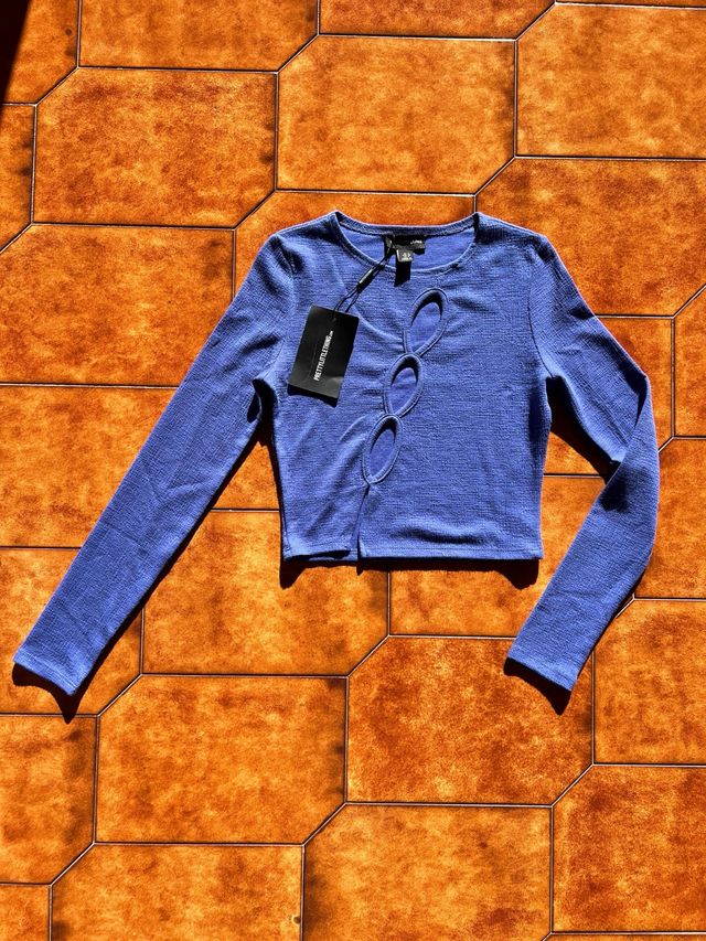 Top Blu Maniche Lunghe Cut-Out PrettyLittleThing