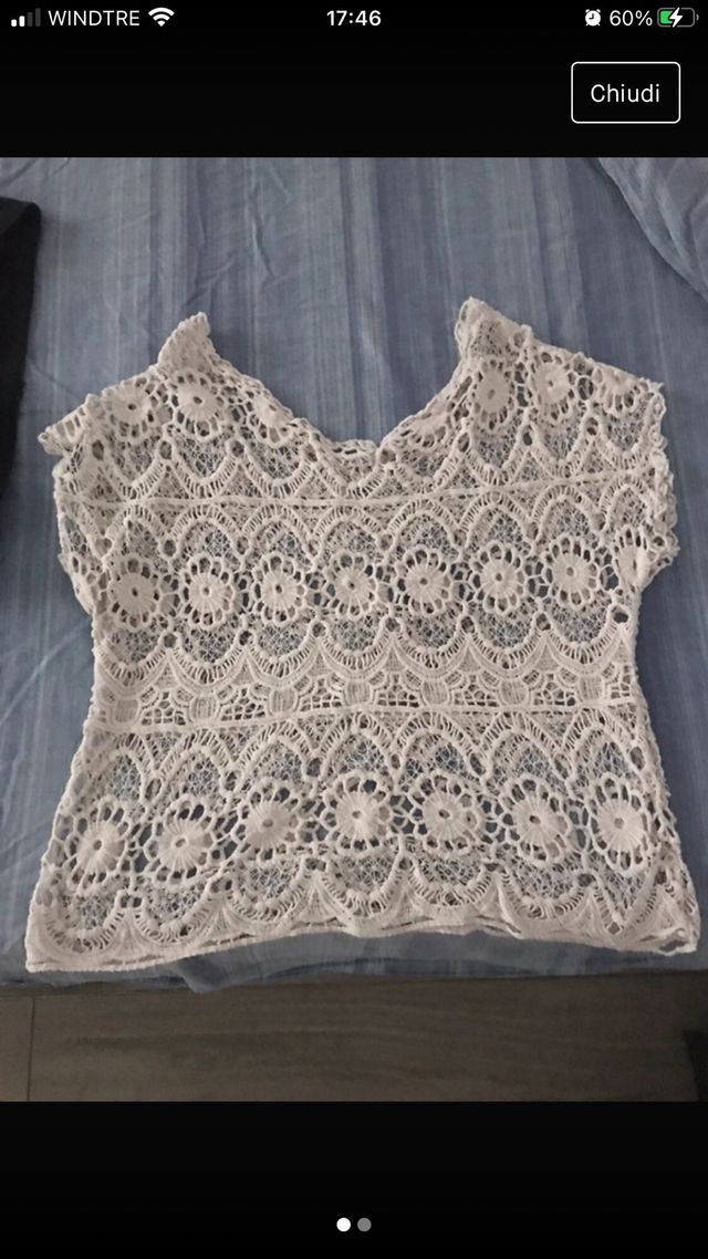 top in macramè bianco , veste molto comodo e con la spalla scesa taglia M