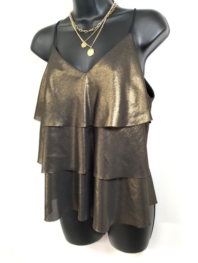 Top Nero Oro Ruffle Taglia M