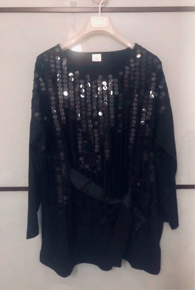 Top nero paillettes oversize cintura mini abito