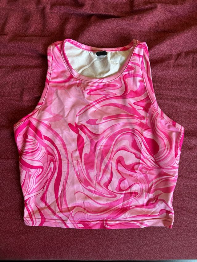 Top Shein fantasia astratta rosa