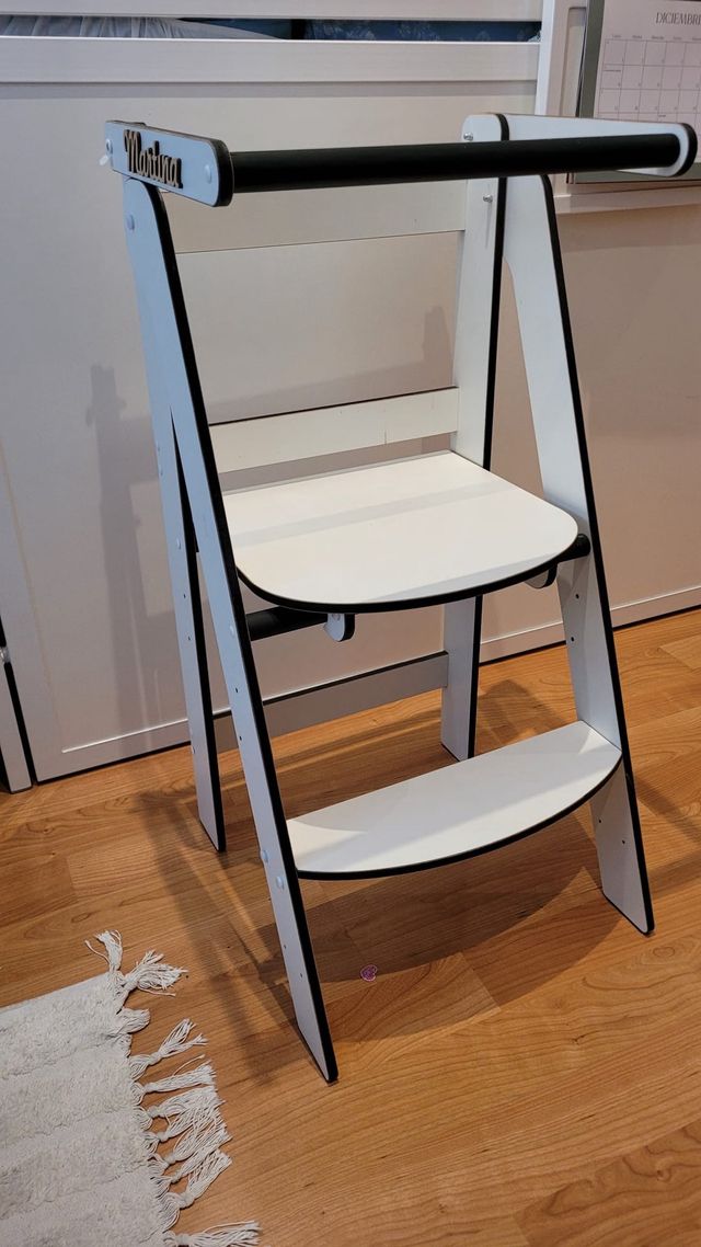 Dettagli del prodottoTorre di apprendimento Montessori in legno, ideale per i più piccoli per raggiungere superfici. Design in legno bianco con dettagli in nero. Barra di sicurezza superiore. Piattaforma a gradini per salire. Prezzo negoziabile. La descrizione è stata tradotta automaticamente.
