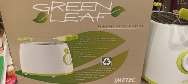 Dettagli del prodottoTostapane della linea Green Leaf di Imetec, con un design moderno e attento all'ambiente.