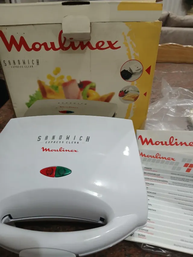 Tostiera Moulinex per preparare sandwich e toast. - Modello: Sandwich Express Clean - Colore: Bianco - Indicatore luminoso rosso/verde