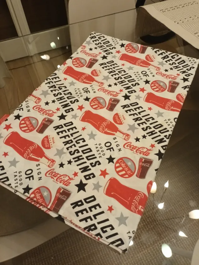 Dettagli del prodottoTovaglia con fantasia Coca Cola, pratica e resistente alle macchie.