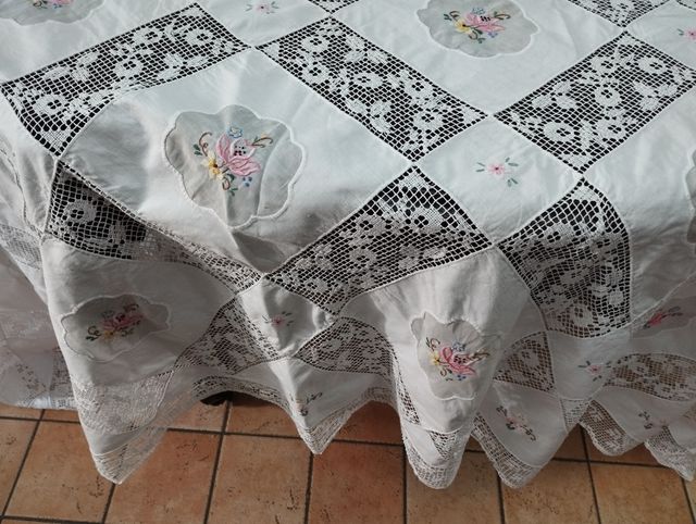 Tovaglia da 12 a file'e ricamata a mano senza tovaglioli .Mis 257x180