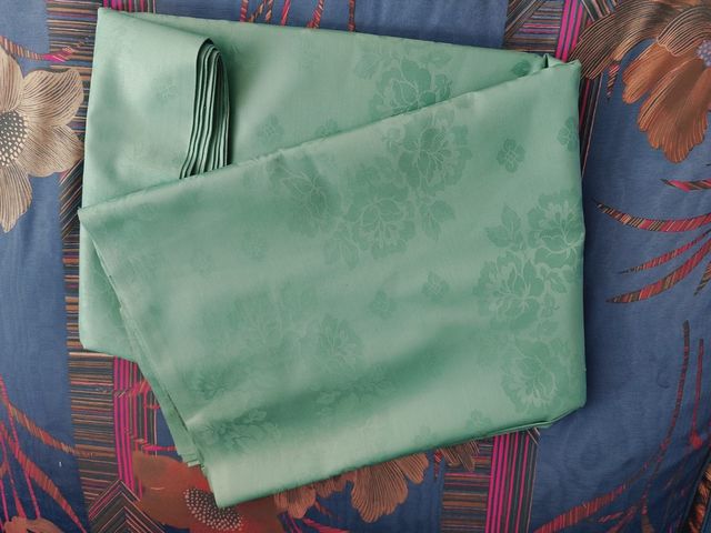 Tovaglia senza tovaglioli, con bordi da rifinire. Colore verde smeraldo Altezza 1,60 cm Lunghezza 3 metri