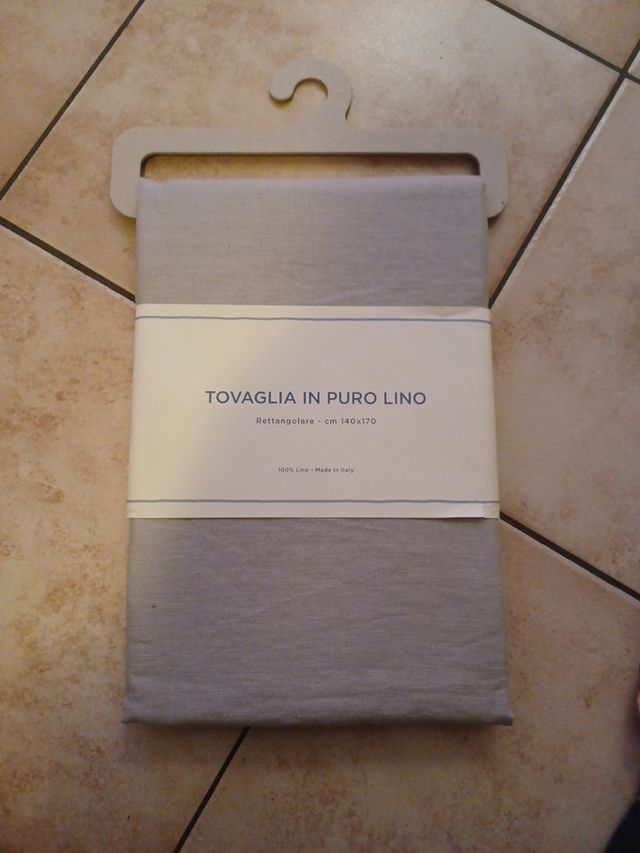tovaglia in puro lino rettangolare cm 140×170 color grigio chiaro mai aperta ancora piegata nella sua confezione,100%lino prodotto originale italiano