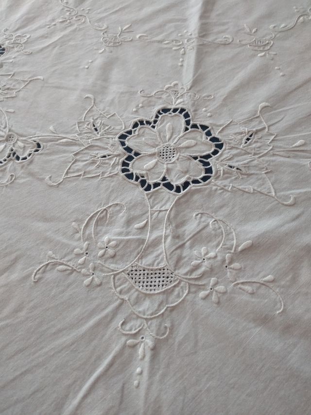 tovaglia intaglio tutta ricamata a mano senza tovaglioli cotone 170x170 tonda